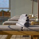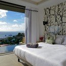 The four bedrooms are designed with the same innovative style and esthetic and include four king suites, with one master suite. All of the bedrooms have sea views and private terraces. Each features a large, luxuriously appointed private bath, and the master suite also offers a private garden as well as the terrace with the sea views.