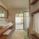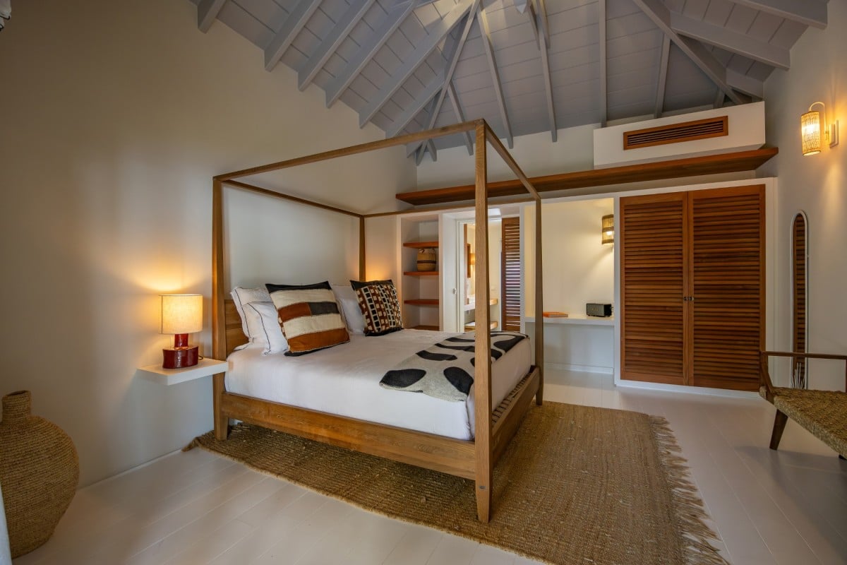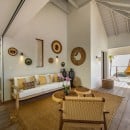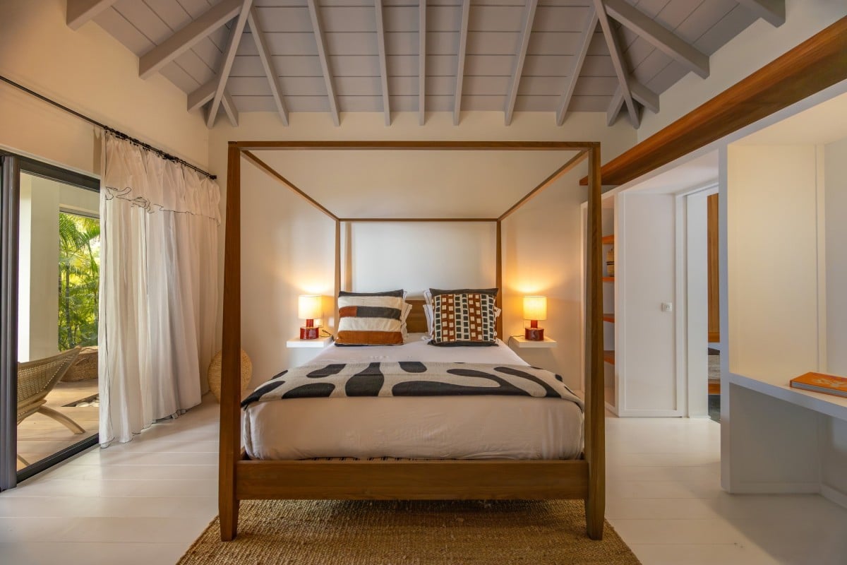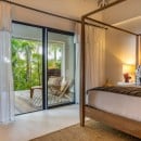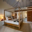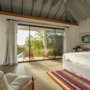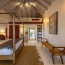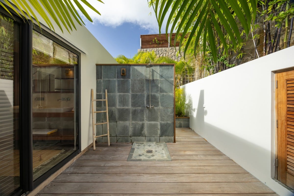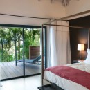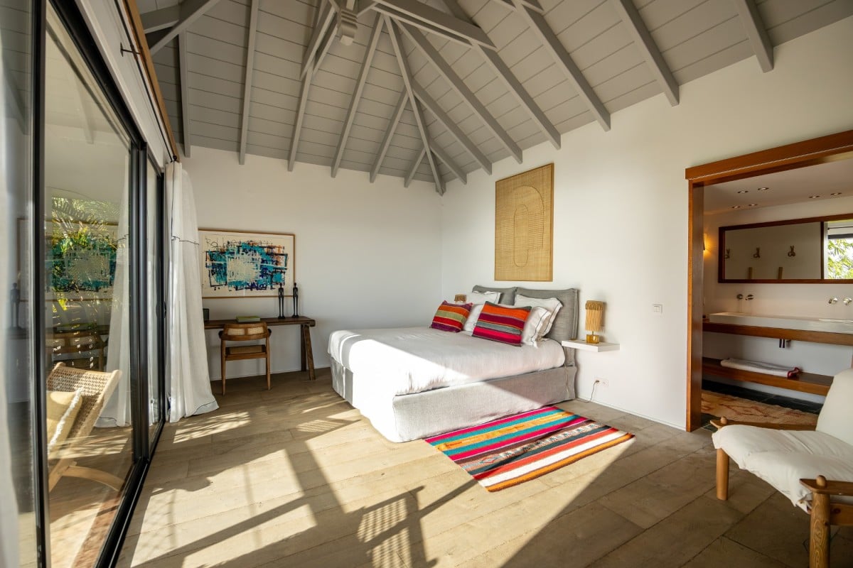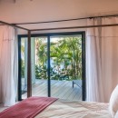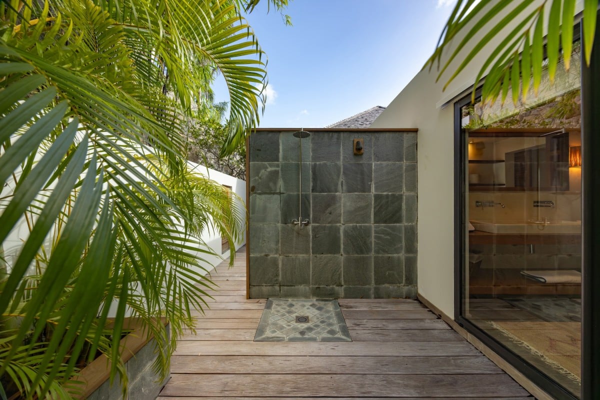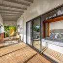 Villa Jocapana offers four beautifully appointed, air-conditioned bedrooms—each with a king-size bed, en-suite bathroom, and indoor/outdoor showers. Two bedrooms are located near the main living area and open onto the terrace, while the third is the master suite, occupying its own level above the pool and featuring a private terrace and lounge space. The fourth bedroom offers equal comfort and privacy, surrounded by lush tropical foliage.