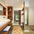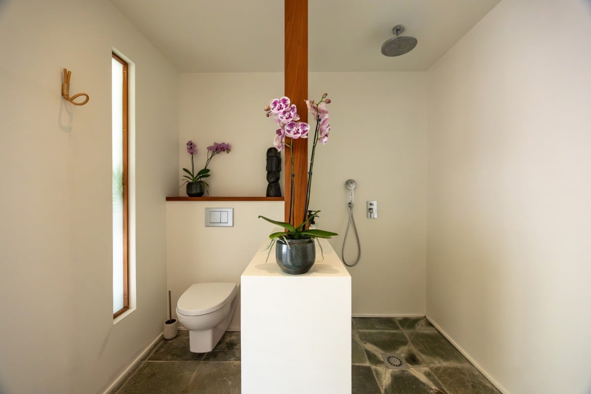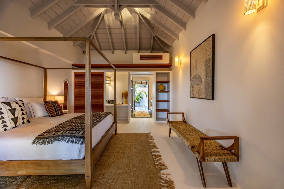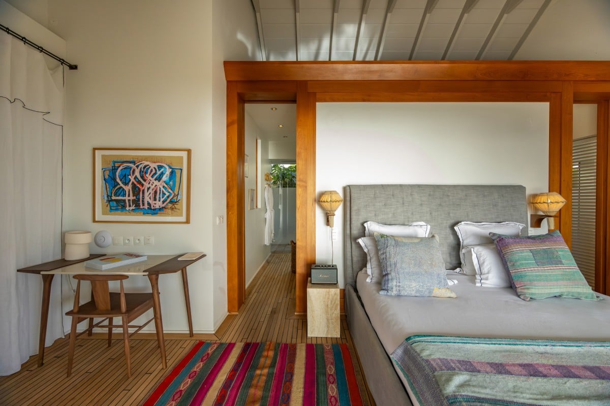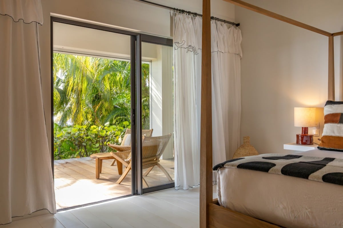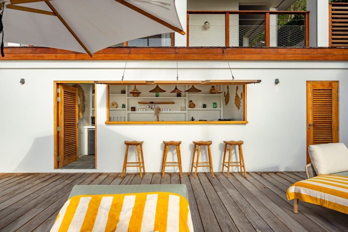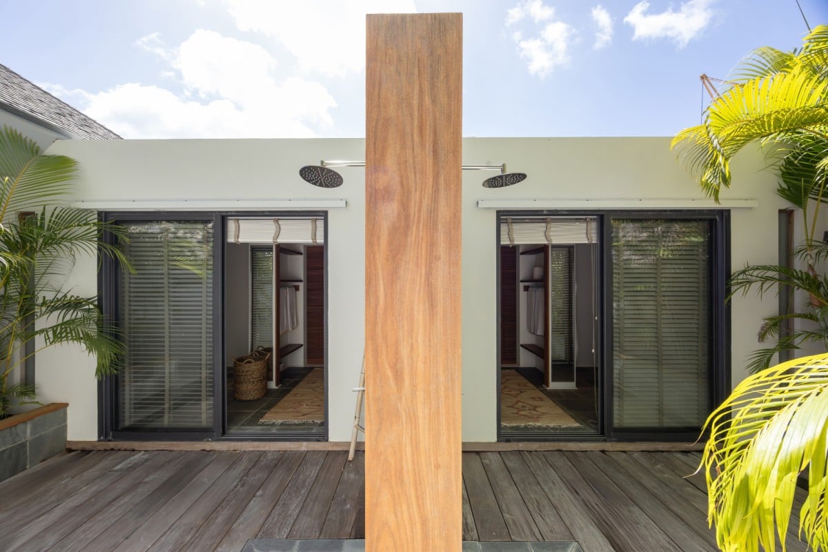 Villa Jocapana offers four beautifully appointed, air-conditioned bedrooms—each with a king-size bed, en-suite bathroom, and indoor/outdoor showers. Two bedrooms are located near the main living area and open onto the terrace, while the third is the master suite, occupying its own level above the pool and featuring a private terrace and lounge space. The fourth bedroom offers equal comfort and privacy, surrounded by lush tropical foliage.