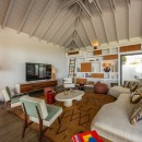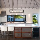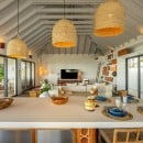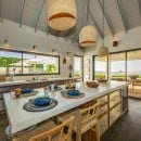 The open-concept kitchen is both stylish and functional, centered around a large island with a breakfast bar - perfect for relaxed mornings or evening gatherings. Adjacent to the kitchen, the covered outdoor dining area seats up to ten guests, complemented by a cozy lounge area for unwinding in the gentle Caribbean breeze.