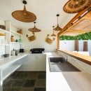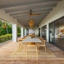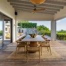 Spread across multiple levels, this contemporary villa is thoughtfully designed with clean lines and minimalist décor, allowing the stunning natural surroundings to take center stage. The expansive living area, set beneath a vaulted whitewashed ceiling with exposed beams, exudes understated elegance. Bathed in natural light, the space opens onto a vast covered terrace through large sliding glass doors, seamlessly blending indoor and outdoor living.