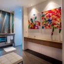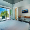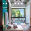 At the back of the villa is an innovative water feature that is equal parts art and plunge pool and a fitness center on a lower level complete the shared spaces. The bedrooms are private retreats and each offers a private terrace or garden space, a queen bed, a luxurious ensuite bath and an entertainment system in addition to the amazing views.