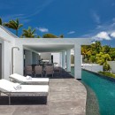 The villa has been created to sit idyllically in its elegant expanse of private gardens and grounds. At its base is a large and lovely lawn for lounging, star gazing or just savoring the views of the sea below. Above, the pool terrace also takes in this scenery, and includes a large stretch of infinity-edge pool backed by a stone terrace beneath a modern but appealing verandah. Furnished with sun beds, al fresco lounging and dining areas and a large sun deck with oversized sun beds, it is sure to become a favorite gathering space.
