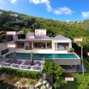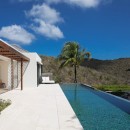 Villa Vesper is located practically at the top of Mount Lurin near Governeur Beach in St. Barts. The villa is built into a steep slope so that some parts of her are up against the mountain itself while others are simple wooden platforms over the jungle canopy. With sweeping views over green hills, the ocean beyond as far as the eye can see, and a quiet, natural opulence that highlights its beautiful geographical location, Vesper is an ultimately private vacation villa unmatched in the caliber of its views and world-class amenities.