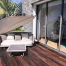 Newly-built, it offers five bedrooms in addition to a stunning array of outdoor spaces that really maximize the setting. Naturally, the infinity-edge pool is going to be a major gathering place, especially because of its expansive and well-appointed terrace. With an array of sun beds, it also features a large verandah with al fresco lounge and dining area. There is also a fitness room on the lower floor, with a small terrace with a beautiful view.