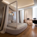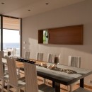 The verandah features a bar and lounge as well as a dining room and living room, and just inside even more luxurious spaces with the same purpose. A large white banquette lines one wall while the immense dining table stretches out in front of the kitchen. Open to the views, it has been done in shades of silver and white and is equipped with top of the line appliances that make it a delight for even skilled and expert chefs.