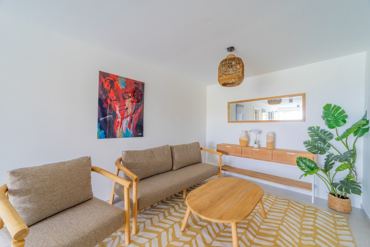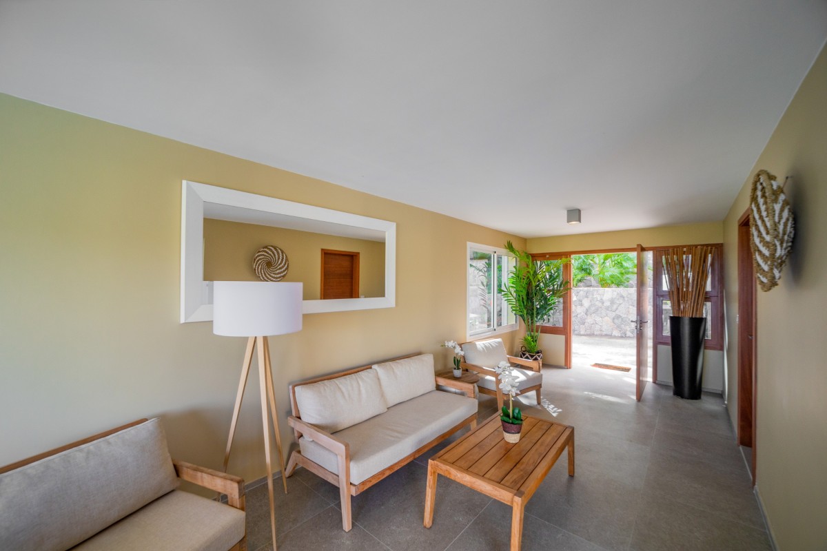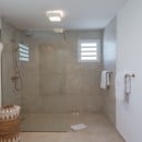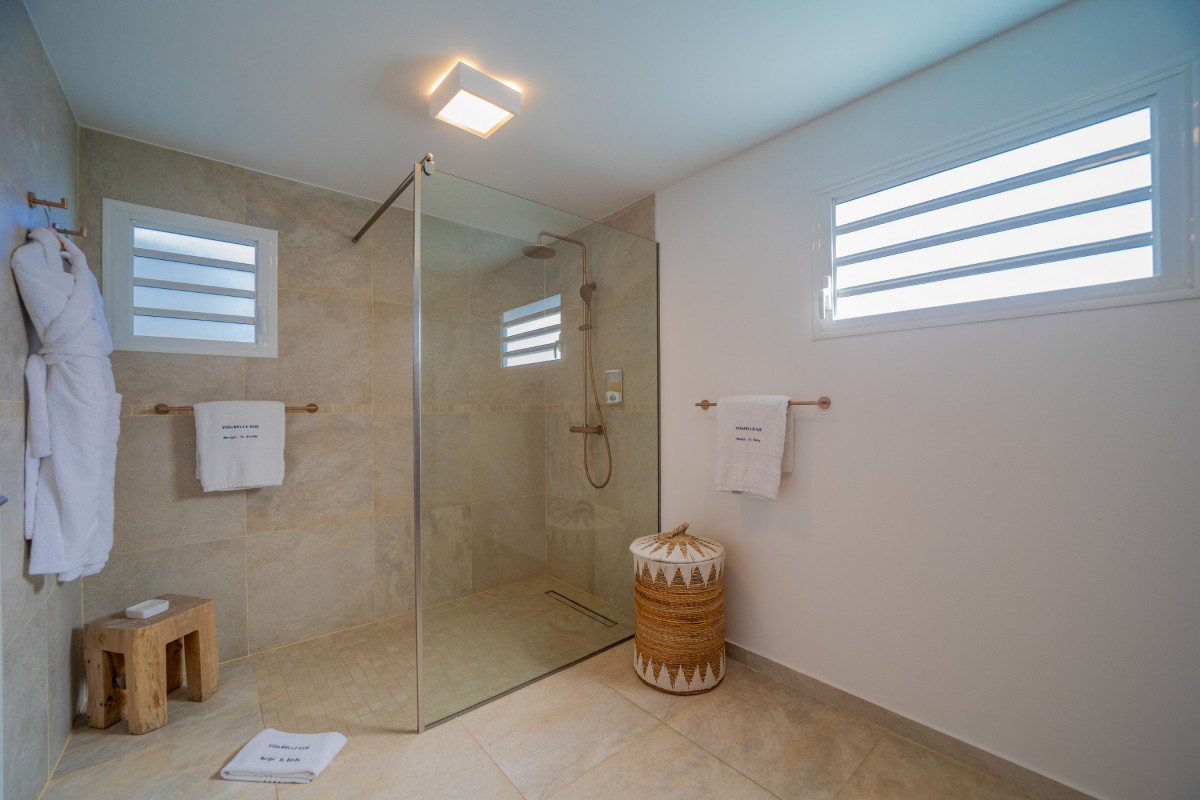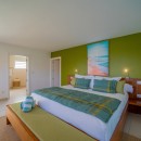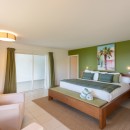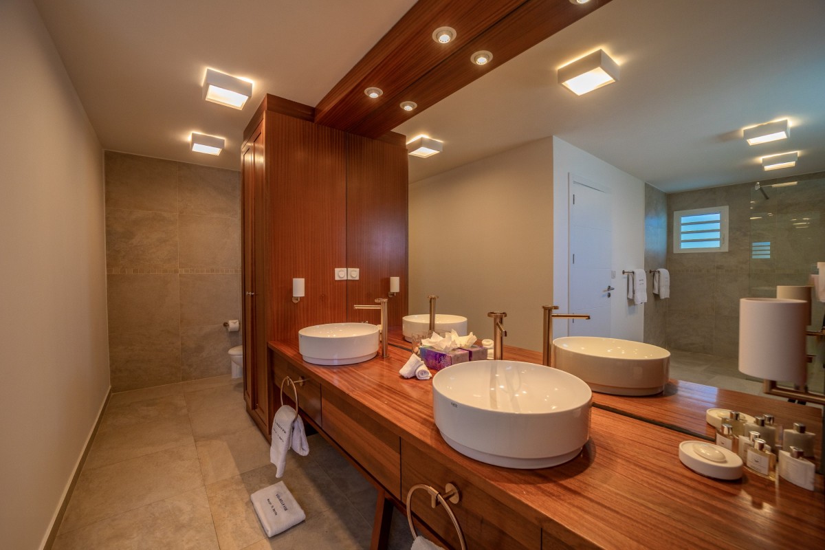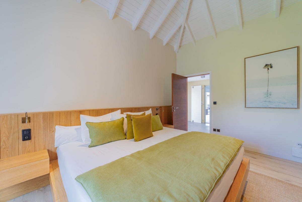 Bedroom 3: Main floor bedroom with a king-size bed, A/C, TV, safe, ocean view, private terrace, and en-suite bathroom with shower, double vanity and WC. 2 guests maximum.