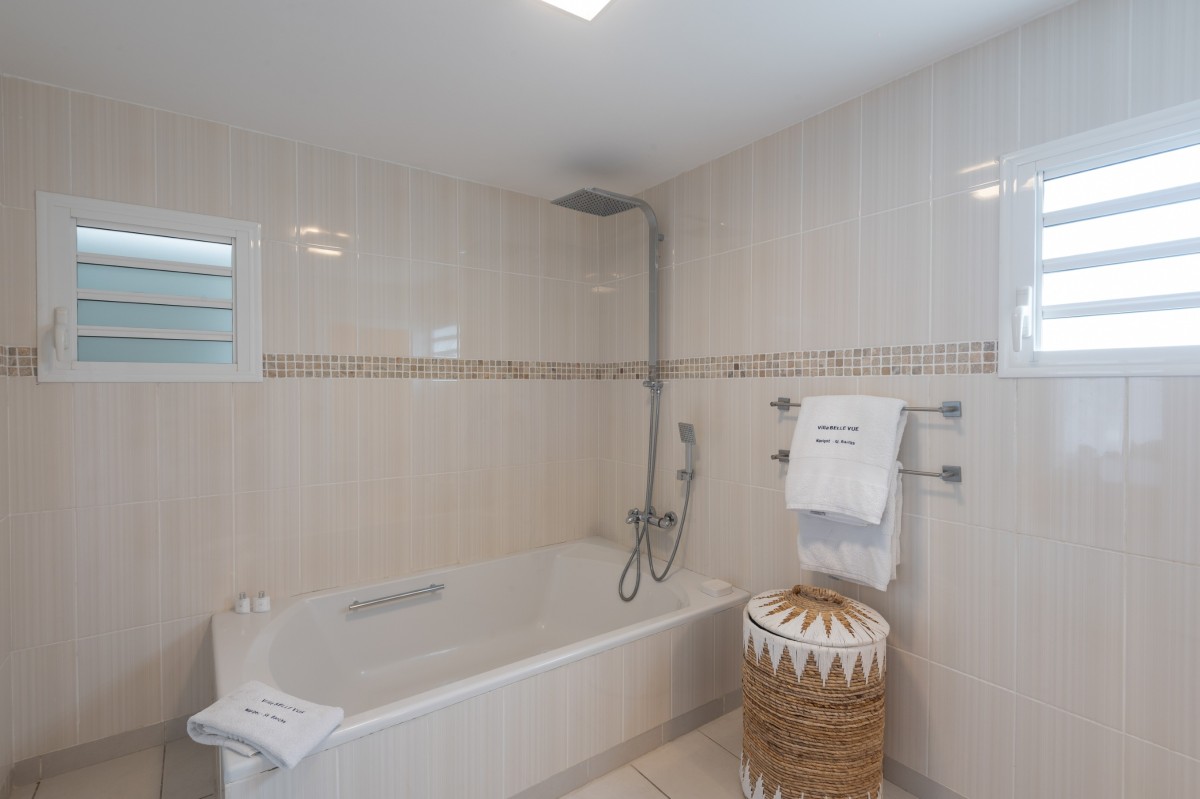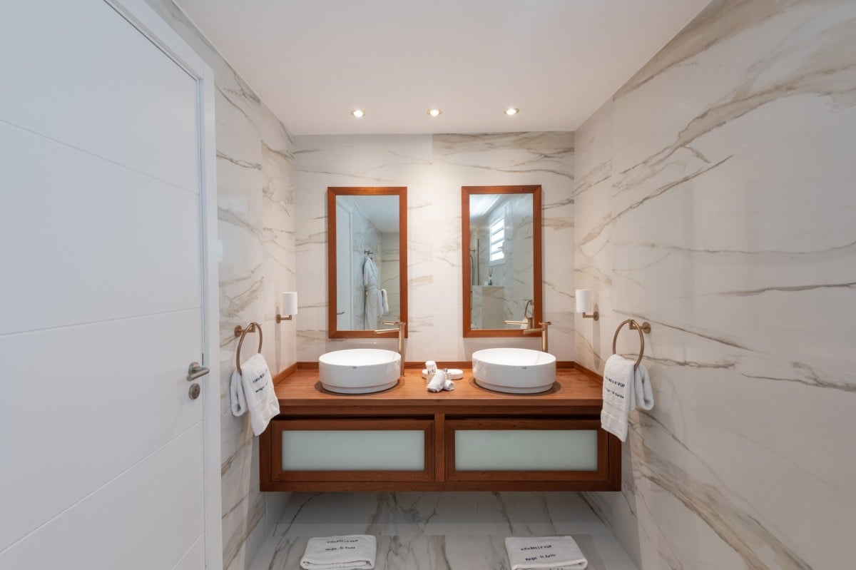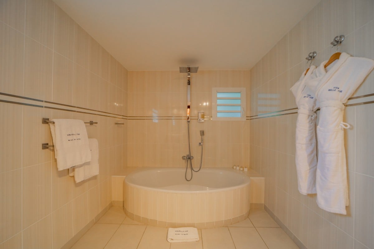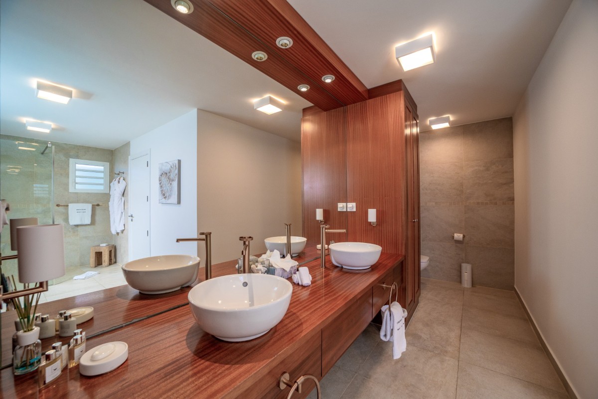 Bedroom 5: Main floor bedroom with a king-size bed, A/C, TV, safe, ocean view, private terrace and en-suite bathroom with bathtub, double vanity and WC. 2 guests maximum.