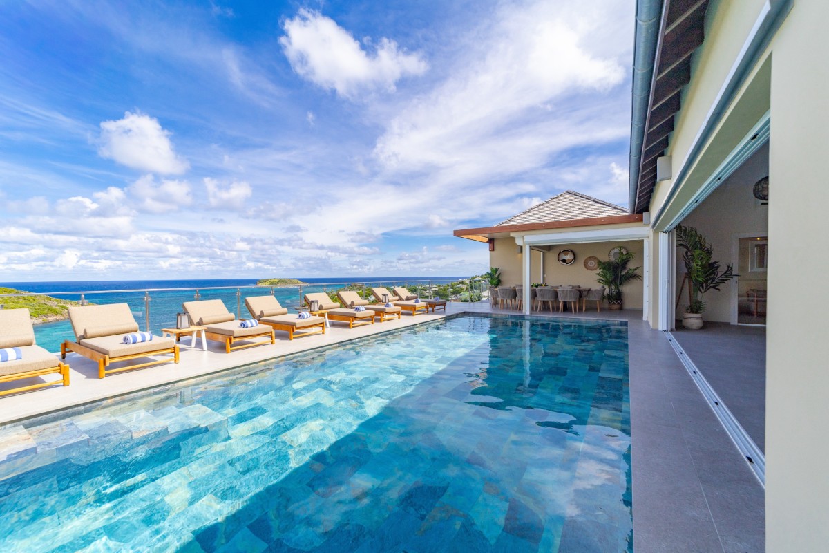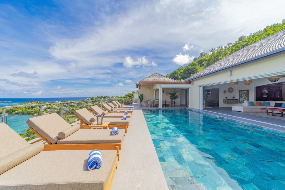 If the idea of a private little world of your own appeals to you, and you have a large family or group of friends eager to savor the delights of St. Barts, the wonderful Villa Bellevue is a must see. With an abundance of private terraces and sun decks, the stunning scenery, and luxuries like the pool, gym and theater, it is a one-stop destination or the most wonderful base for a wider exploration of the island.