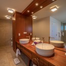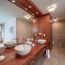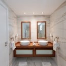 Built as two levels, the villa features a charming pool terrace at its very heart. This is surrounded by a wonderful sun deck that leads to the property's great room area. This features high, richly stained wooden ceilings, a cool white terrazzo floor and décor that soothes and livens things up with bursts of color. The living room is done mostly in white but uses red accents to create a bit of energy. This opens through a massive archway into the dining suite and the enormous, gourmet kitchen. With a breakfast area and an array of high end appliances, it is a wonderfully functional space for a group of any size.