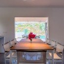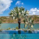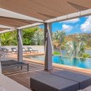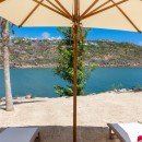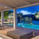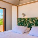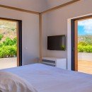 Eden House is a substantial estate that spans multiple levels. To access the main house from the private beach, a wooden staircase guides you upwards. There is a first suite on a lower level before reaching the primary floor slightly above. On this main level, you'll find a communal area featuring an open kitchen, a dining table, spacious white sofas, a functional workspace, and a magnificent terrace. The Eden House terrace is designed to cater to all preferences, offering both shade and sun. Among the sun loungers, there's a covered dining table with a barbecue, as well as cozy sofas for soaking in the breathtaking views. You'll find it challenging to tear yourself away from this idyllic spot.