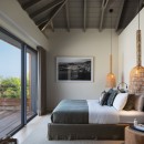 La Isla villa comprises four bedrooms, each with en-suite bathrooms. All bedrooms are elegantly furnished with king-size beds and adorned with bright tones, complemented by hints of gray and taupe. One bedroom is located on the main level, while the other three are situated on the lower level, accessible via an interior staircase. These bedrooms open onto furnished terraces and feature office areas and plush cushions, creating a peaceful and soothing atmosphere, perfect for unwinding after beautiful days spent under the St. Barths sun.