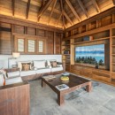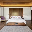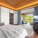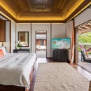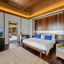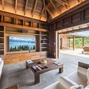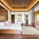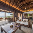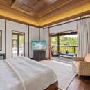 Villa Little Girasol, designed as an all-wooden cottage, thoughtfully positions each room to capture sweeping sea views. The main deck, featuring a heated swimming pool and sun loungers, offers a perfect spot to unwind while gazing over the bay and lush coconut palms. Four charming bungalows extend from the deck, creating a harmonious balance between communal areas and private spaces.