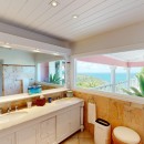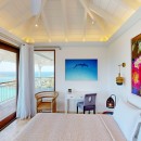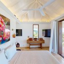 Upon entering, the villa unfolds into a beautifully appointed living room. Adjacent to this is the open-plan kitchen, featuring a chef’s scullery ready to cater to any culinary desire. The nearby dining area is perfect for memorable meals, but it’s the panoramic views that steal the show. The terrace invites you to soak in the stunning vistas of Marigot Bay and the endless ocean, effortlessly blending indoor elegance with outdoor charm.
