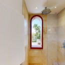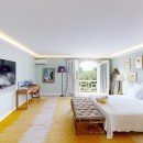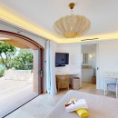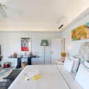The villa offers six well-appointed bedrooms. Two suites on the main level provide easy access to the villa’s amenities, while two additional suites on the lower level, accessible via external staircases, ensure privacy. Additionally, two more suites are housed in a newly completed bungalow at the garden’s edge, facing the sea. This bungalow, finished in 2024, includes an upper bedroom with a small kitchenette, designed for self-sufficiency and seclusion.
