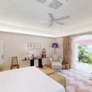 Villa Mustique’s design is thoughtfully curated, with a striking use of color, particularly the vibrant pink that adorns the exterior—a playful yet sophisticated nod to the iconic style of Sean Connery’s French Riviera residence. This distinctive palette enhances the villa’s luxurious ambiance.