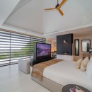 Bedroom 3: Main level bedroom with a king-size bed, dressing room, A/C, safe, TV, ocean view, access to the pool, and en-suite bathroom with shower, double vanity and WC. 2 guests maximum