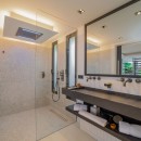Villa Turtle features four luxurious bedrooms, each with its own en-suite bathroom, HDTV, and gorgeous views of the ocean and surrounding landscape. The master suite occupies the upper level and includes a private terrace. Two additional bedrooms are located on the main floor, while the fourth bedroom and a fully equipped fitness room are situated on the lower level, offering a quiet and private retreat.