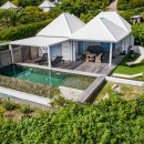 Doors open wide to island breezes and panoramic vistas. But without a doubt the outdoor area is the heart of this lovely island villa. The terrace is furnished with a sofa and an al fresco dining table so you can enjoy meals outside island style. The private infinity edge pool seems to blend with the waters of the sea. For a night to remember, the pool is lit for a moonlight swim. Relax on chaise lounges to take in the natural beauty of St. Barts. Small garden spaces surrounding the terrace and an open yard and garden enhance this lovely villa.