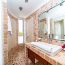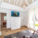Unlike many villas that put the pool right in line with the sea views, this villa has kept the pool as a secret little paradise at the back of the villa. Flanked by the natural stone and the tropical growth, it is circular in shape and creates an oasis of privacy, peace and beauty. Incorporating natural stones, wood and small gardens, it is a perfect spot to gather at all hours. It offers an abundance of sun beds and is just steps from one of the covered terrace areas that serve perfectly as al fresco living and dining spaces.