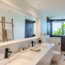 The villa features two air-conditioned bedrooms located in the main house, each with plush king-size beds, HDTVs, and both indoor and outdoor showers. Decorated with soft fabrics and natural textures, the bedrooms are peaceful retreats that open directly to the villa’s beautiful surroundings. For wellness-minded guests, Villa Poppy also includes a well-equipped fitness room.