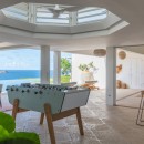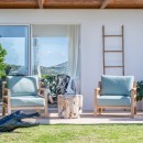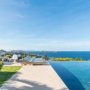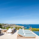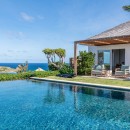 The expansive terrace at the front of the villa reveals breathtaking ocean vistas. Here, guests can unwind on luxurious loungers and daybeds, take a dip in the heated swimming pool, or sip cocktails in the stylish outdoor lounge at sunset. A charming wooden pergola offers a tranquil spot to relax in filtered sunlight, while a second outdoor seating area provides even more space for socializing or quiet reflection. Whether it’s sunrise or sunset, the views from Villa Poppy are nothing short of spectacular.