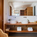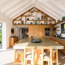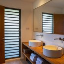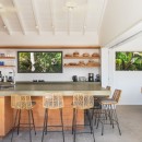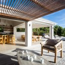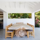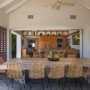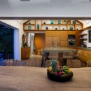 Just steps from the pool and gazebo, and open to the terrace is the dining room and enormous gourmet kitchen. Designed in a sleek and modern style, it also features a few island touches that give it just the right touch of earthiness. The kitchen is modern and high-tech, stocked with the finest appliances to make meals and snacks a breeze. This open floor planned space also features a large indoor lounge with entertainment system.