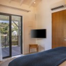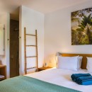Bedroom 1 (Bungalow I): Bedroom with a queen-size bed, A/C, ceiling fan, TV, Apple TV, safe, private terrace and en-suite bathroom with outdoor shower, vanity and WC. 2 guests maximum.