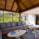 Crafted as a series of premium pavilions, the villa offers a bevy of shared indoor and outdoor living spaces. The heart of it is the pool terrace area. Here, visitors enjoy a long stretch of infinity-edge pool that gazes out towards the amazing scenery. It is framed by a large wooden sun deck furnished with oversized sun beds all sitting beneath your own swaying palm. Nearby, a gazebo serves as the perfect al fresco lounge with its banquette sofa and roomy proportions. Star gaze, wait for sunsets or sunrise, or just curl up with a good book or good friend and enjoy the privacy and views.