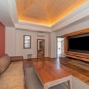 In addition to the pools, and their surrounding terraces and lounging areas, there is also the central structure that features a "nouveau" French and industrial style. Within this building are shared living spaces that use an open-air design to deliver maximum enjoyment. The gourmet kitchen is open to the dining area as well as the outdoor dining areas. The living room is also comfortable and spacious, opening to the terrace, and a separate media room acts like a private theater.