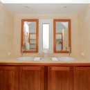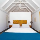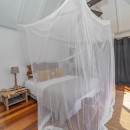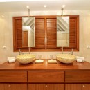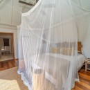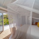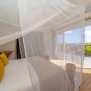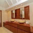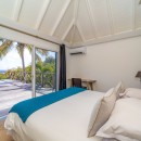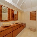 Villa Mademoiselle offers two spacious, air-conditioned bedrooms, each with a king-size bed, en-suite bathroom with a shower and double vanity, and direct access to the terrace. Located on opposite sides of the villa for added privacy, the bedrooms are elegantly decorated with natural textures, soft curtains, and artisanal wooden accents, creating a peaceful and intimate ambiance.