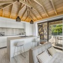 The kitchen and dining area are fully equipped to meet all your needs, whether you prefer preparing a simple breakfast or a complete romantic dinner. Modern appliances include an electric oven, gas stove, microwave, refrigerator, freezer, dishwasher, blender, mixer, centrifuge, kettle, toaster, and a Nespresso machine. A breakfast bar offers a casual dining option, while the outdoor dining table invites you to enjoy meals under the open sky in a serene tropical setting.