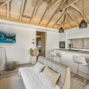 The living area is bright, comfortable, and thoughtfully designed to open seamlessly onto the terrace, allowing the gentle island breeze and natural light to flow through the space. Fully air-conditioned, it features an HD television, Apple TV, and a Bose sound system, creating a relaxing environment whether you are enjoying a quiet evening indoors or unwinding after a day exploring the island.