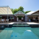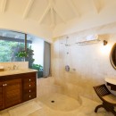 The three bedrooms are each designed as master suites. They feature king beds or dual twin beds. Each is fitted with romantic and helpful netting, a large ensuite bath with sea views or garden views, and access from the main living areas. However, the third suite is on a lower level beneath the terrace and it has a lovely, private garden.