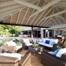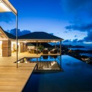 Take in the views from the comfort of your expansive pool terrace. Done in wood, it wraps the uniquely shaped, infinity edge pool in the center. The pool is flanked on one side by an open sun deck furnished with premium sun beds. The other edge is wrapped with a gazebo that serves as an al fresco living room and lounging space. Beneath a separate pergola is an al fresco dining room.