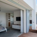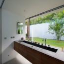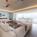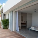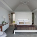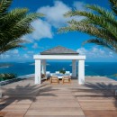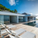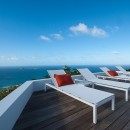 Villa Ginger is sleek and modern, an amazing combination of various tones of white on white, with a little bit of color introduced from time to time to add visual interest. The villa overlooks the ocean and palm trees from a vista over the infinity pool.