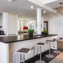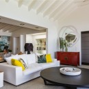 The pool deck, for example, opens into all of the interior living spaces, including the traditional great room. This offers high white painted ceilings, terrazzo floors, and furnishings that say “welcome,” at all times. There is a large lounge with oversized furnishings and an entertainment system, a stylish dining area, and the enormous gourmet kitchen. With an island and breakfast bar, top of the line appliances, and views directly out of the glass doors to the terrace, it is a delight to use at any time.