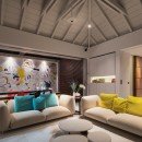 The use of natural materials and bold splashes of color make this villa a truly stylish and inspiring one. However, the amenities and the scenery on their own can make for the perfect holiday. After all, the sun deck also includes the lounge areas and outdoor dining. They spill indoors to the enormous living room with an entertainment system and views to the sea. Indoors is also the location of the formal dining area and the enormous gourmet kitchen. This faces to the sea and allows you to enjoy the views even as you whip up delicious, gourmet meals using the very latest technologies and innovations.