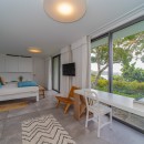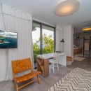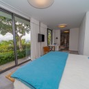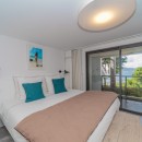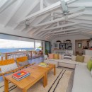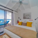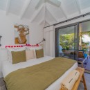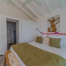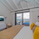 Summertime villa rental comprises four supremely comfortable, air-conditioned bedrooms, each thoughtfully appointed with king-size beds, dedicated office spaces, high-definition screens, and en-suite bathrooms. The first two bedrooms grace the main level, flanking either side of the swimming pool and affording captivating ocean views. Descending a few steps via an exterior staircase, the third bedroom boasts a private terrace with a breathtaking ocean outlook. The fourth bedroom, the master suite, rests a short distance below the third, providing an oasis of tranquility and opulence – an ideal setting for unwinding in a highly private and exclusive ambiance.
