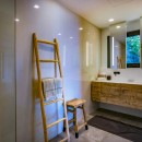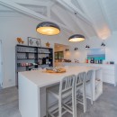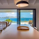 Spanning multiple levels, Summertime's vacation rental extends a warm welcome within a refined and elegant ambiance, all while immersed in a breathtaking panoramic setting. The spacious living area seamlessly spills onto the terrace, where a tranquil swimming pool awaits, complemented by a commodious sofa facing a high-definition screen in a cozy decor adorned with neutral tones and refined wood accents. Adjacent to this, the indoor dining room entices guests to savor culinary delights near the well-appointed kitchen, nestled beneath a soaring vaulted ceiling. Gentle Caribbean trade winds drift through, bestowing an extraordinary luminosity and an unrivaled sense of relaxation upon this secluded sanctuary.