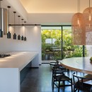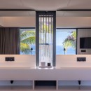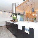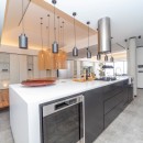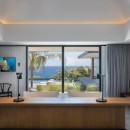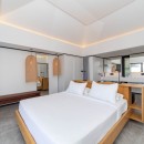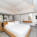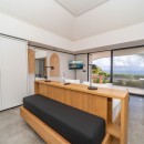 The ultra-modern, well-equipped kitchen is perfect for preparing meals or hosting a private chef for special events. The decor is soft and refined, with velvet fabrics and natural fibers creating a pure, serene atmosphere.