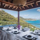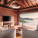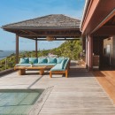 Villa What Else features an infinity edge pool that seems to blend seamlessly with the blues of the sky and the waters of the sea. Stylish outdoor furniture enhances the Balinese wood deck with sea views and an al fresco dining area. A green lawn with chaise lounges is the ideal spot to relax and take in the beauty of the island. Villa What Else provides perfect transitions from indoors to outdoors to capture the essence of island living.