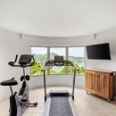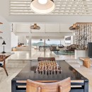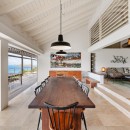 From the upper level terrace, you can enter the beautifully designed great room. With its high ceilings and cooling terrazzo floors, it manages to capture the light and the sea breezes, bringing them into the open space. There is a large and country-styled dining room which opens to the gorgeous kitchen. With honey-stained cabinetry and stone countertops, it is furnished with top of the line appliances and is a delight to use thanks to its amazing views outdoors. Nearby is the lounge with its excellent style and décor and a few steps away is the sunken living room and media lounge.