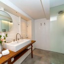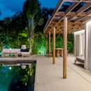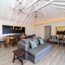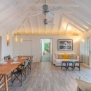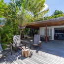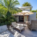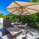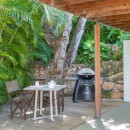 The three bedrooms are individual retreats, with only one within the main house. This is the king suite along with a private bath. The suite also opens directly to the pool terrace. The remaining bedrooms are king suites, and each is housed in a small cottage tucked into the property. One is near the pool and another is in the gardens. They both have the same airy design as the rest of the property, with terraces opening into the gardens, outdoor lounging areas, and large en-suite baths.