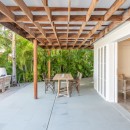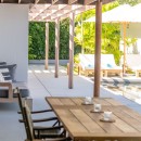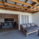 You'll notice this as soon as you see the charming pool area that frames your lovely views of the sea. A blend of wooden and concrete decking, this pool terrace features simple lines and welcoming furnishings to create the ultimate outdoor living area. The terrace is partially shaded, offering lounges as well as sun beds. The covered terrace uses hefty wooden framing that works well with the concrete floors and the natural materials of the outdoor dining and living rooms.