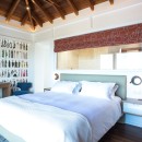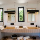 Three bedrooms accommodate up to six guests. All three of the bedrooms have queen-size beds. You can access the terrace from all three bedrooms, and all three offer stunning ocean views. Each bedroom features an ensuite with a shower, double vanity, and WC. The second bathroom has an outdoor shower as well.