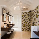 The construction of the home seems to breathe serenity into the space. It’s a beautiful combination of stone and exotic wood, inviting you to relax in a peaceful atmosphere.