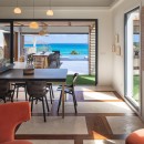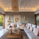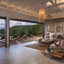 Under the covered terrace, you’ll find open-air living and dining spaces. These spaces have a commanding view of the ocean.