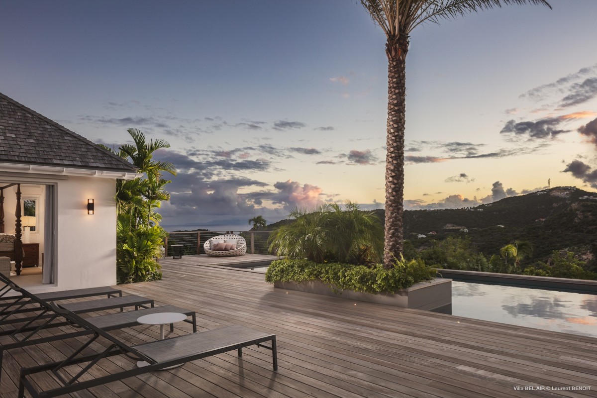 Please note that the villa Bel Air enhances the pool, the main deck and adds an ajoupa. Below, the new deck will shortly offer a fourth bedroom, a fitness room, and an office. (Work will be conducted this summer.)