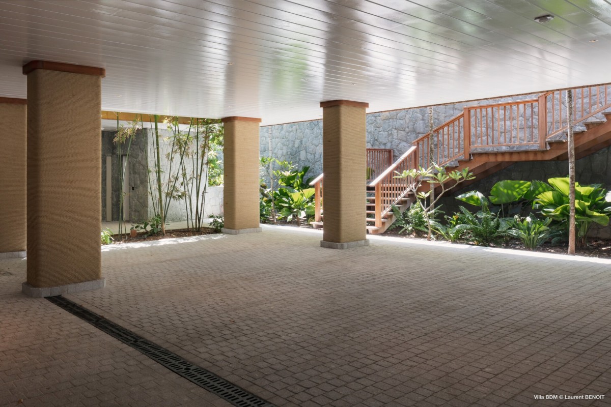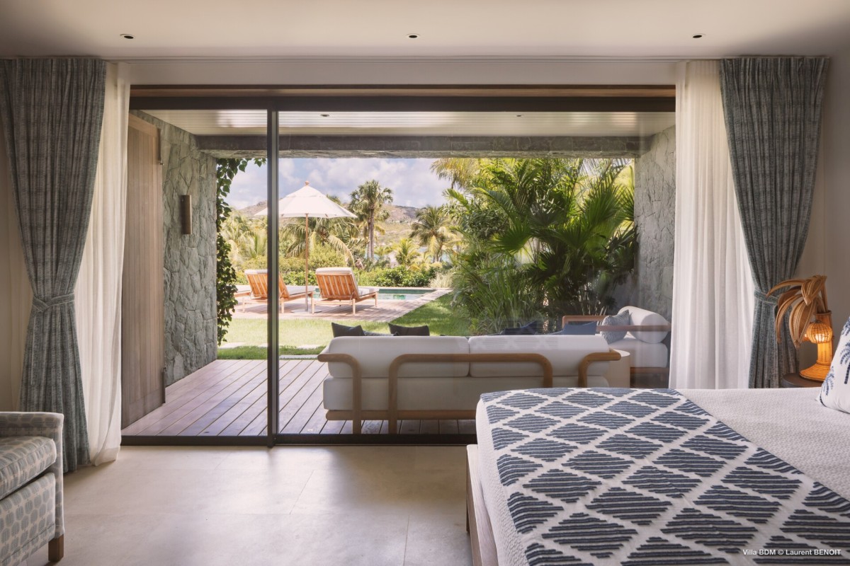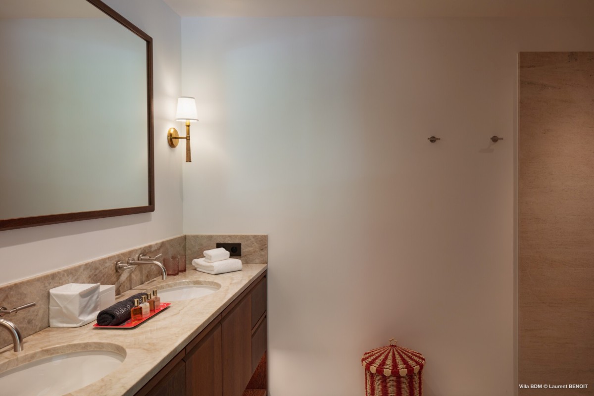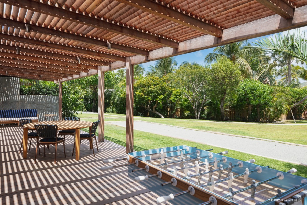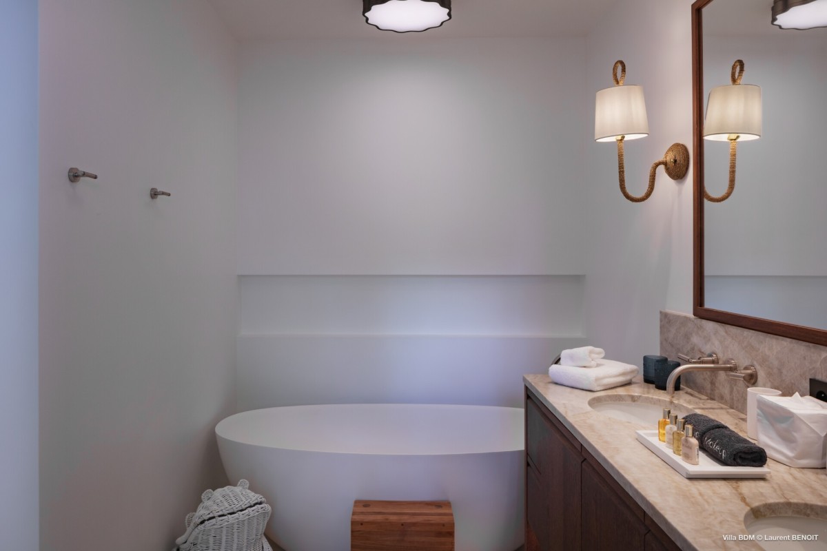 Lower Level: Two further bedrooms, one with double full beds, expand the villa’s comfort. A fitness room, massage room, and games area (pétanque, table football, ping pong) enhance the experience. From here, a private path leads directly to Little St. Jean Beach.